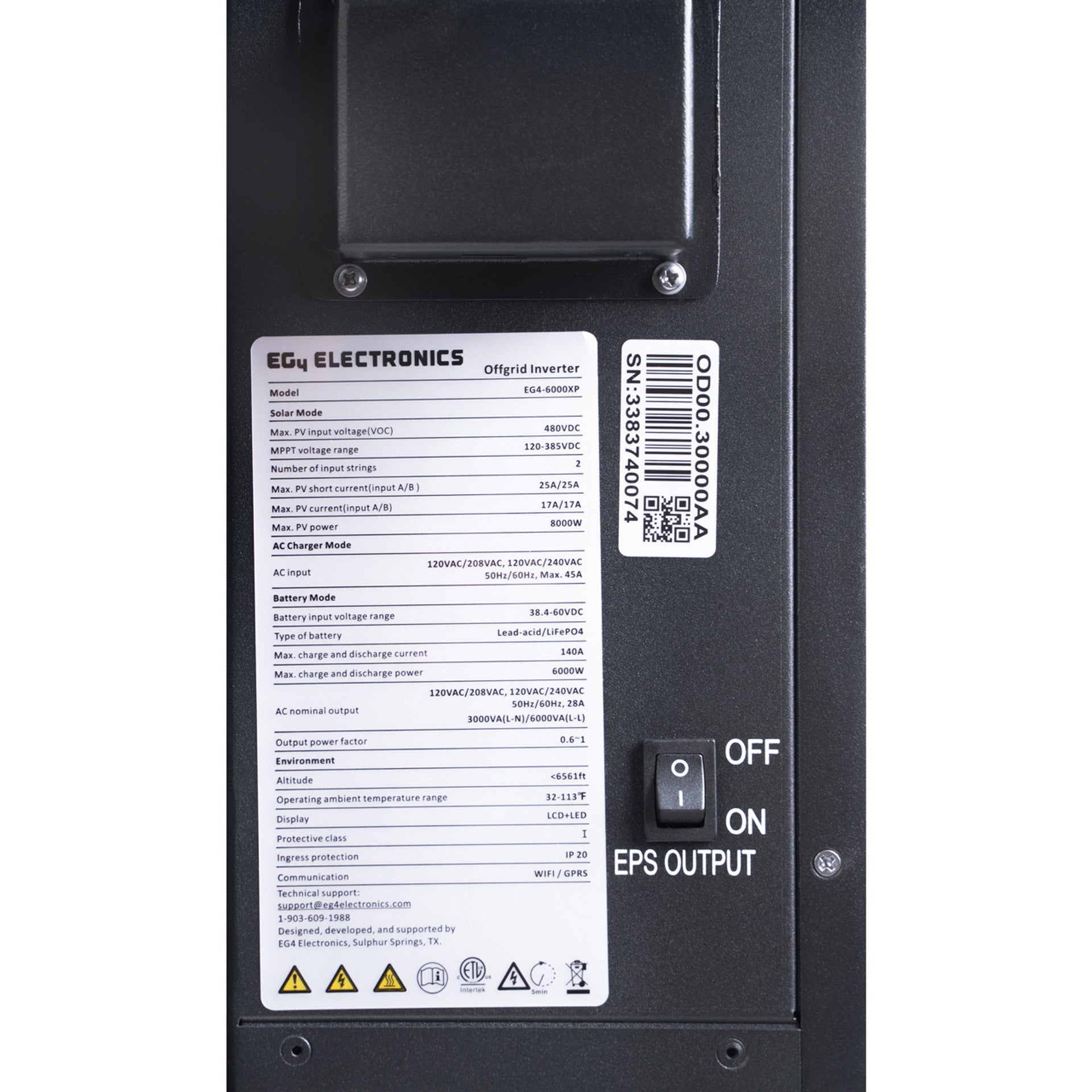All-In-One Solar Inverter |EG4 6000XP Off-Grid Inverter | 8000W PV Input | 6000W Output | 480V VOC Input | 48V 120/240V Split Phase